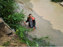 二、融于一體、打成一片,用行動展現(xiàn)不忘初心。市城投公司黨委7月2日晚接到駐黑石寨村第一書記魏星同志的災(zāi)情報(bào)告后,7月3日一早緊急安排陳鵬、齊繼明、余會勝三名優(yōu)秀黨員組成突擊隊(duì),加強(qiáng)該村防汛救災(zāi)力量。突擊隊(duì)一到村部,積極協(xié)助村兩委干部巡查水庫、河道及田垅,發(fā)現(xiàn)河堤險(xiǎn)段、險(xiǎn)塘、險(xiǎn)庫6處,排除險(xiǎn)情6處,并對村里12處土坯房和危房一一進(jìn)行了詳細(xì)察看。7月3日下午,黑石寨村位于兩山河溝交匯處河堤經(jīng)河水沖刷突然塌方28米,直接威脅河堤外群眾房屋、生命財(cái)產(chǎn)和農(nóng)田安全,市城投公司突擊隊(duì)、鎮(zhèn)政府聯(lián)村干部及村兩委一班人積極行動,迅速組織村黨員打樁、填石方、灌沙袋,跳入齊腰深的水中筑起防護(hù)坡,努力將災(zāi)害損失降到最低,市城投公司駐村第一書記魏星帶頭下河搶險(xiǎn),突擊隊(duì)與村民一起灌填沙袋200多袋,充分發(fā)揮了黨員的先鋒模范作用,展現(xiàn)了不忘初心,體現(xiàn)了不怕吃苦,不怕累的優(yōu)良作風(fēng),得到了村民的認(rèn)可和贊許。
