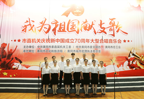 9月8日,黃岡市直機關(guān)慶祝新中國成立70周年大型合唱音樂會“我為祖國獻支歌”在市職工活動中心隆重舉行。比賽由市委直屬機關(guān)工委、市委文明辦、市總工會主辦,市文旅局、市城管執(zhí)法委承辦,共39支合唱隊3000人報名參加初賽。在第四黨建區(qū)的安排部署下,我公司高度重視、選派人員、認真?zhèn)滟、激情演藝,在“我為祖國獻支歌”——慶祝新中國成立70周年大型合唱音樂會初賽中取得良好成績。