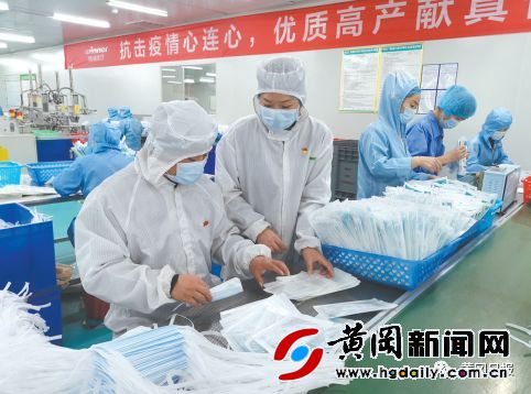 3月23日,穩(wěn)健醫(yī)療(黃岡)有限公司工作人員在醫(yī)用外科口罩生產包裝車間內作業(yè)。記者吳婭婷通訊員周國安攝